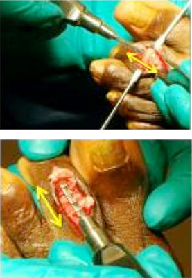 Reapproximate the extensor digitorum longus tendon and the medial and lateral collateral ligaments to help further stabilize the proximal interphalangeal joint that has just been fixated with the ARROW-LOK implant. The more stable a fusion site is, the faster union takes place.